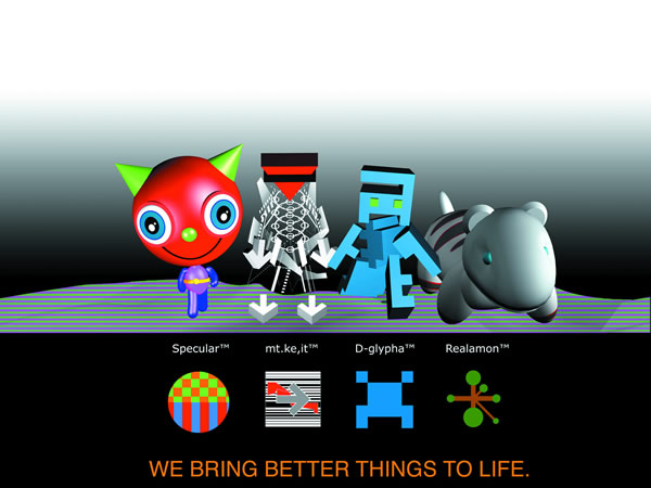 Representation. Semiomorph explores this concept in an immersive environment, using the visual language of video and computer games as the starting point for its sign system. The environment is alternately represented as text, diagram, icon or simulation. Each representation is personified by a game character which explores how these forms of representation themselves have shifted simply by becoming digital. Word is Mt.Ke,I-t, diagram is D-Glypha, icon is Specular, and simulation is Realamon. These game characters are archetypal artefacts, capturing aspects of digital media and electronic game language.